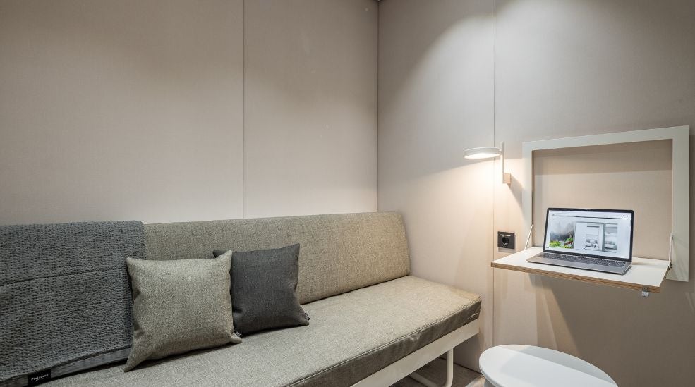 - Flexible: A sofa bed that easily converts into a comfortable bed. RestPod+ includes an additional pull-down wall bed for two.